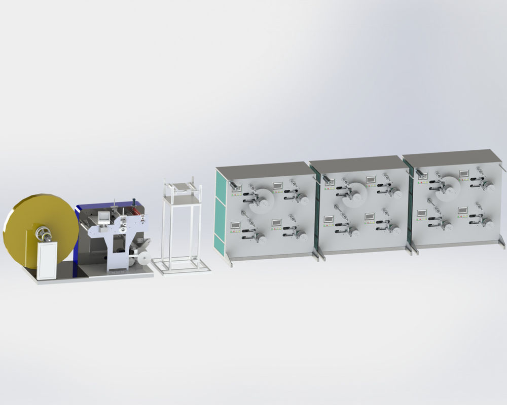 Paper strapping prodction line used to produce environmentally friendly paper strap alternative to conventional plastic strapping.